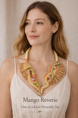 come together in one-of-a-kind wearable art necklaces designed to feel both effortless and expressive.